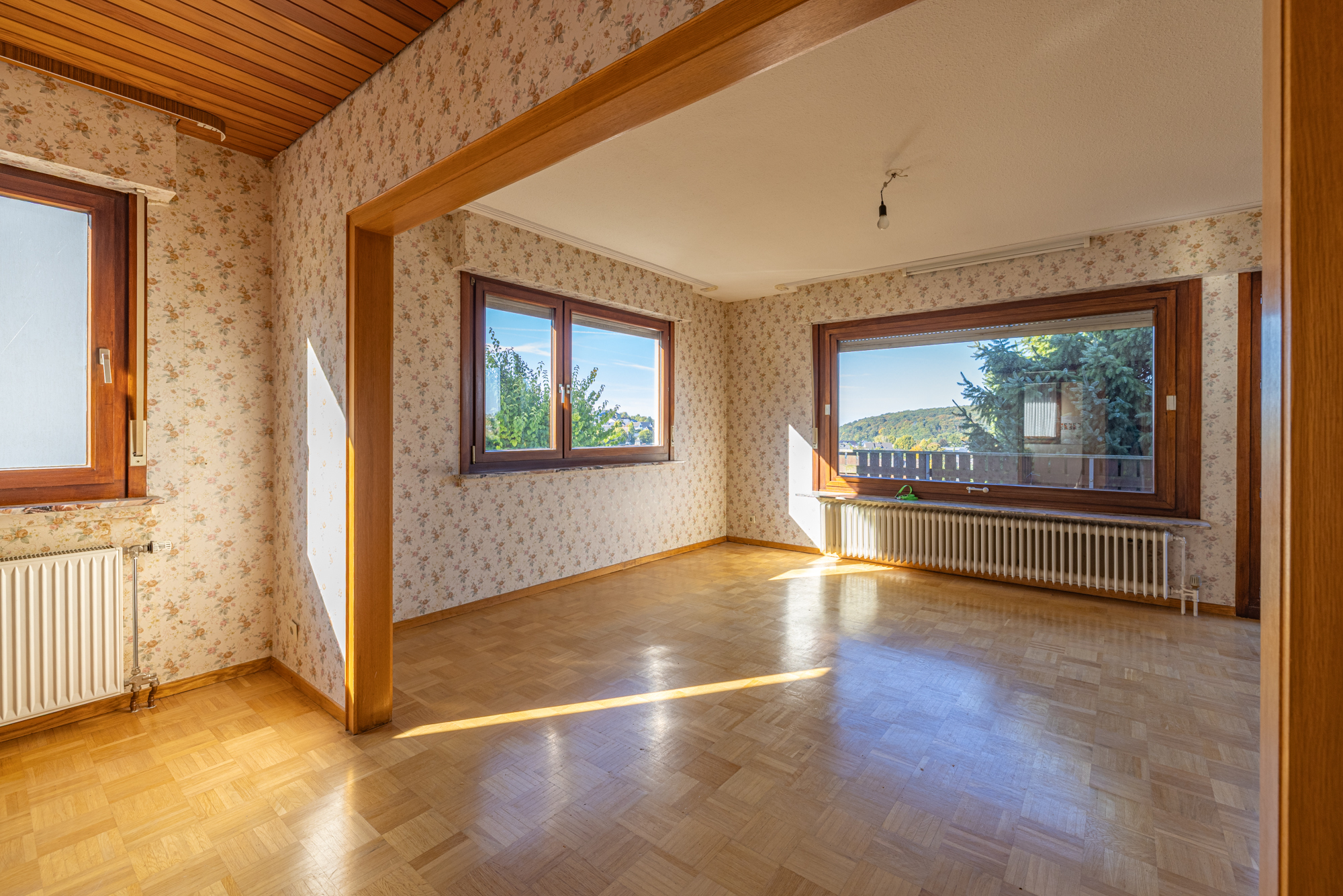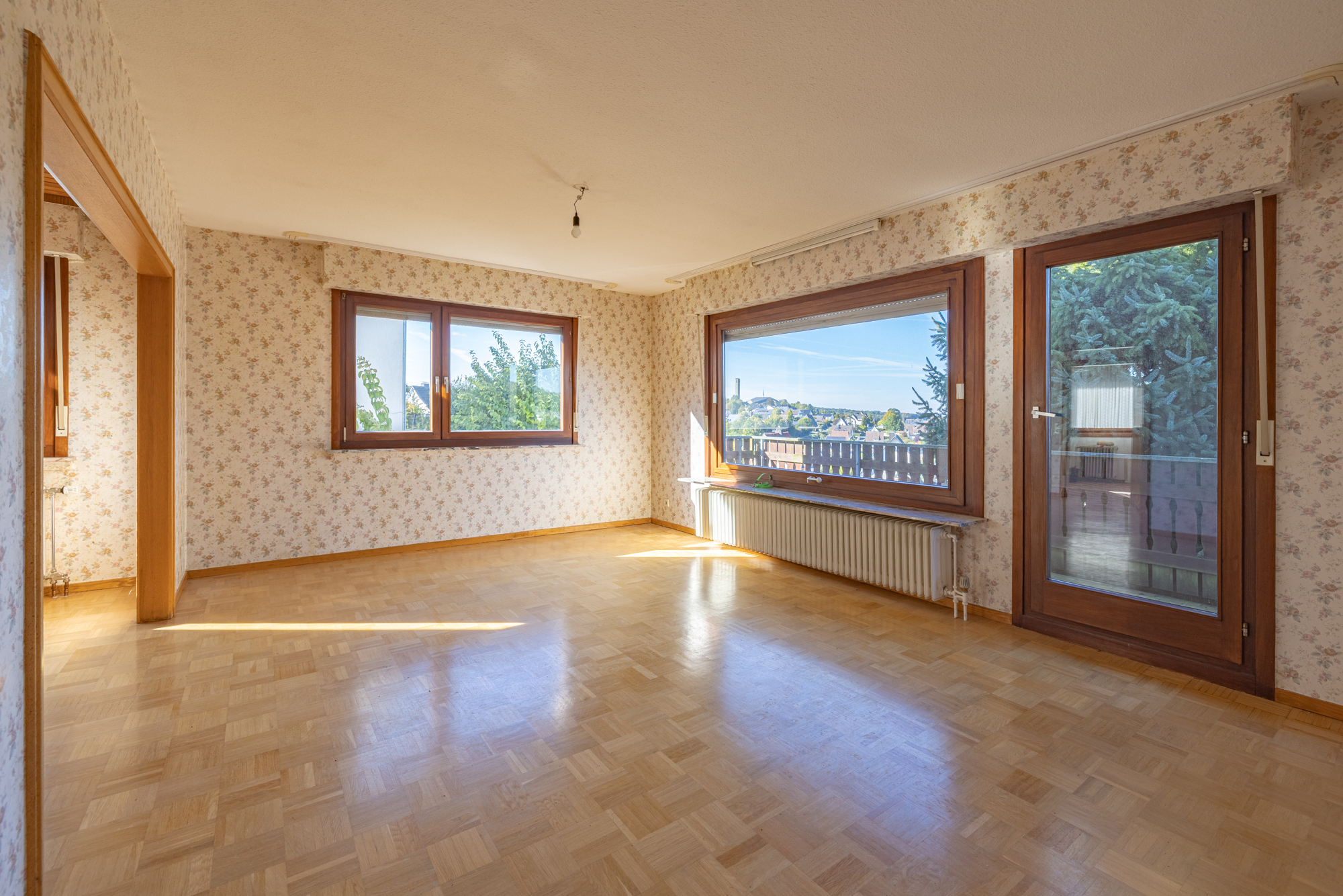 •Geräumiges und lichtdurchflutetes Wohn- und Esszimmer – das Herzstück des Hauses – mit direktem Zugang zum Balkon und traumhaftem Fernblick in die Sauerländer Natur